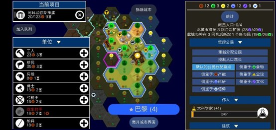 然而,食物的增长并不是无限的。当城市的快乐降低时,每座城市的食物收益将减少 75%,这极大地减缓了人口的增长速度。在游戏前期,快乐往往较为稀缺,这使得人口无法持续快速增长。