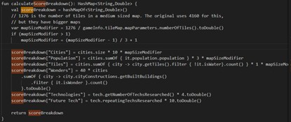 - 由于常规对局中不会多次研究未来科技,因此文明积分可以由报表中的数据及政治栏目中的奇观数量近似计算,这也意味着文明积分不具有战术上的意义。